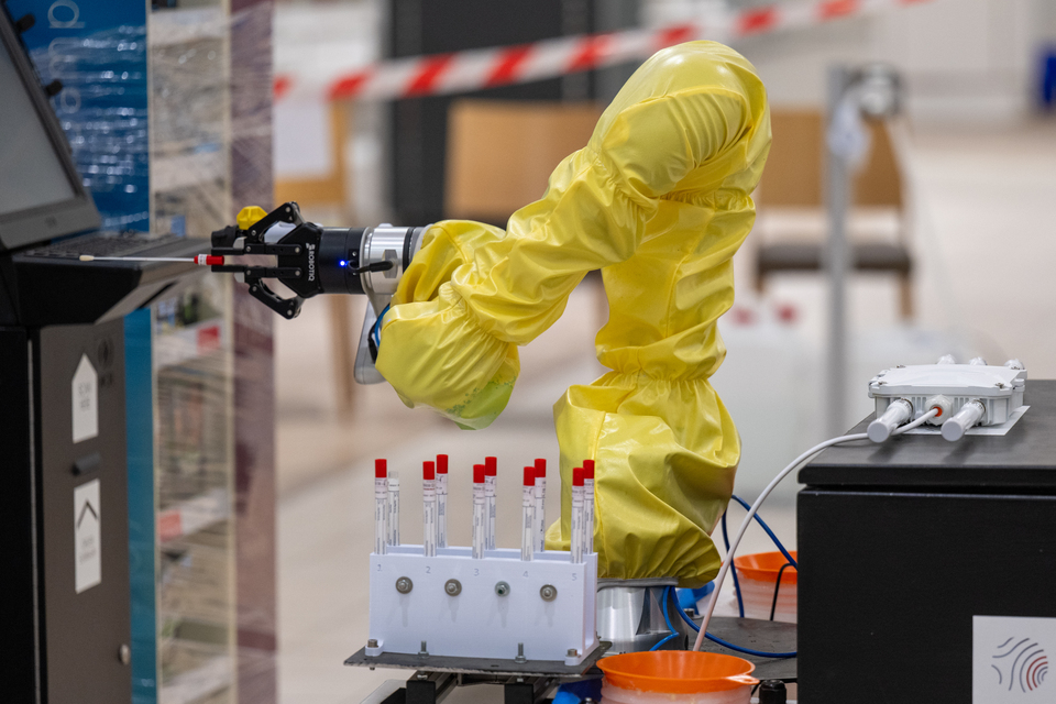 The University of Bristol is pioneering an uncrewed ground vehicle with a robotic arm that would work with a tethered drone to carry out decontamination with a spray system at a range of heights.